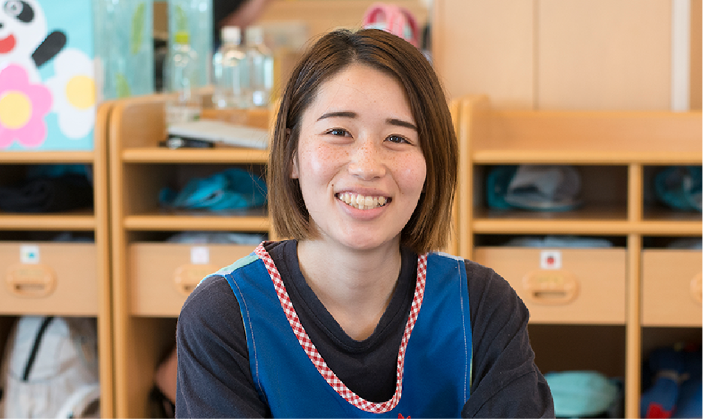 - 大学時代に保育実習でお世話になりました。その時、すべてにおいて“楽しい”をコンセプトに「遊び」を大切にする園の方針に共感して入職しました。また、自然に恵まれた園なので、タケノコ堀りや大根掘りなど、季節を感じられる行事を体験させてあげられるのが当園の魅力だと思います。